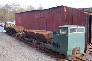 At the MRT, we have amassed a goodly collection of wagons, and hopefully we will be able to represent at least a selection from each of the main industries which used industrial narrow gauge railways. This weeks photos show a few of the wagon fleet. Above is a large ex-MOD bogie flat wagon, manufactured by Hudson of Leeds, and which is used to transport rail panels; then, below, last Saturday’s Heavy Freight with Motor Rail No.20 hauling a train of wagons which needed to be shifted from the bottom yard. There’s at least two types of skip, the remains of an RAF Fauld bomb wagon, and an open ex MOD Eastriggs. Hiding at the back are a flat from a quarry at Bakewell.