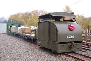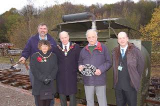 The locomotive was formally handed over to the ownership of the Moseley Railway Trust during the MRT’s open day at its Apedale site on 9th November 2008. The locomotive formed the centrepiece of the event, which was held to mark the 90th anniversary of the armistice which ended the First World War. Neil Dowlan, Curator of Industry for Leeds Museums & Galleries, handed over the locomotive to Ron Redman, President of the Narrow Gauge Railway Society. Ron was instrumental in preserving the locomotive, and accepted the locomotive on behalf of the MRT.