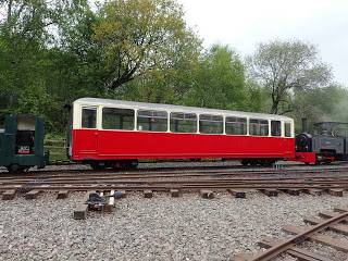A busy weekend at Apedale preparing for the Stanhope Steam Gala. All three visiting steam locos are now on site, which inevitably means a mega-shunt to get them all safely into the shed. Also part of the mega-shunt is clearing the main shed out to allow the floor to be cleaned so that it is safe to allow visitors in to view trade stands and model railways. In between all of this, normal project works have continued. The large Motor Rail no.1320 is rapidly shrinking as it is stripped down for its restoration – this is not terribly photogenic. On the other hand, the FR coach has been painted and looks rather splendid. Sunday has seen us hosting a photo charter for 30742 Charters – the sun shown and everyone seems to have had a jolly good time. The opportunity was taken to line up all the Kerr, Stuart locos. Simple maths tells us that there is 412 years of history in the photo. Wikipedia tells us that 1605 was the year of Guy Fawkes and the Gunpowder plot. Draw your own conclusions!412 years of history