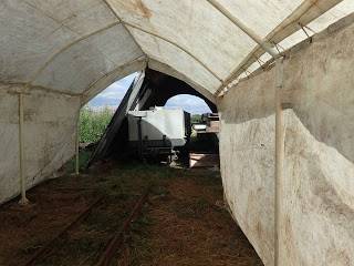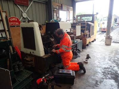 We have been honoured to host a visit from Dr Ailsa, and his glamorous assistant, who should have been called Craig but wasn’t. They cam to lay hands on the Hunslet “Twusk”, and more specifically its rather troublesome Ailsa-Craig two cylinder engine. The problem with this one is that the big end bearings were shot. The engine would run but wouldn’t generate oil pressure, and would then try to seize. The Good Doctor got to work; after an epic day’s efforts, the loco has been restored to health. Well done, chaps! Elsewhere on site, it’s been a steam train weekend with the Joffre doing its level best to broil the crew. A new “temporary” building has also been erected – the objective being to give covered accomodation for the increasing population of restored wagons on site.