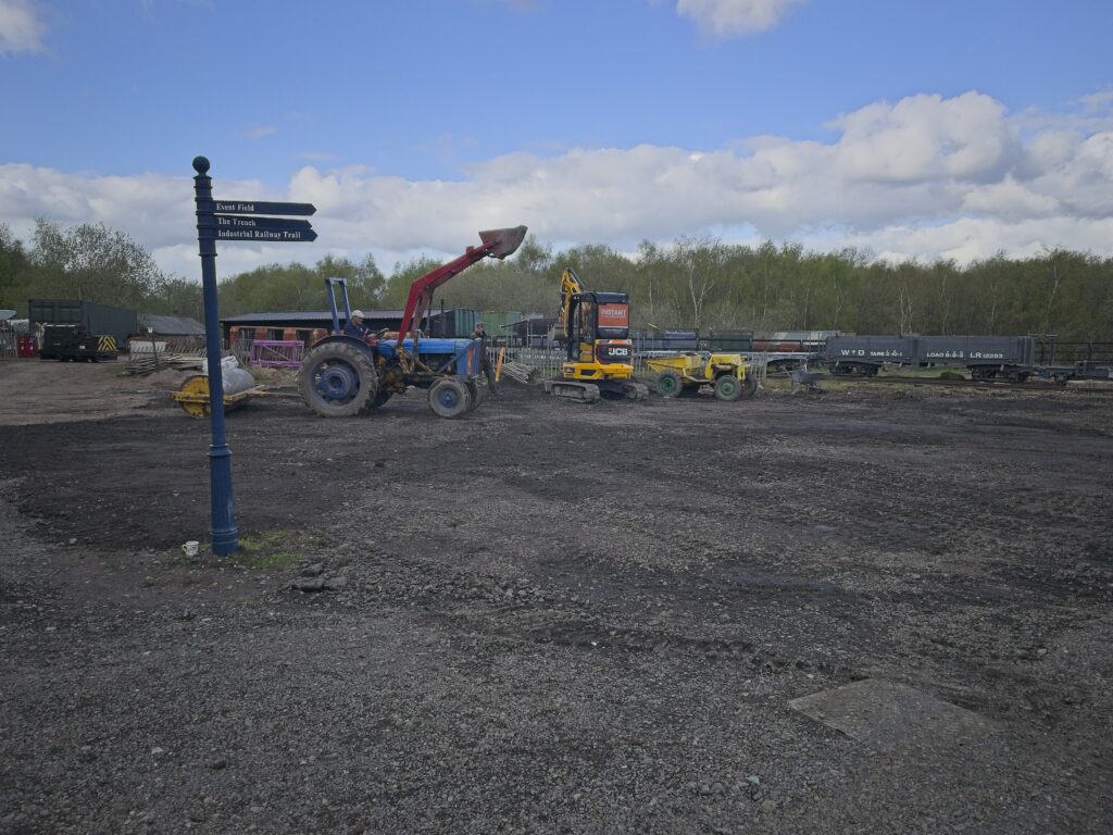 Recent visitors to the site at Apedale will have noticed that the Top Yard (the area immediately behind the station) has rather resembled a war zone. The area was used by the Museum contractors for their storage yard, and has then had some serious excavations carried out to connect the Museum to the various underground services (Northern Line via Charing Cross?). Concious that this area is part of the “shop front” for the site, and also a critical display area for various events, a lot of effort has been expended in trying to sort the area. It’s not perfect, but certainly looking much better.